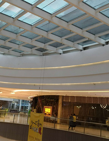 商場用電動提升機:現在每個商場基本都會使用商場廣告吊鉤,而這些廣告吊鉤大多是安裝在商場中庭邊緣的,通過導向輪把鋼絲繩引導過去然后垂下吊鉤,這樣在需要更換條幅的時候就只要輕輕一按,就可以放下吊鉤更換條幅了。